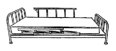 带床档的新式病床,不用时将床档插于床尾,使用时可插入两边床沿。多功能床档附加一木桌,以便病人在床上进餐,必要时还可插入患者的背部,作体外心脏挤压时使用,也可按需要升降。