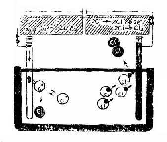 二、直流电的生物物理作用与生物化学作用人体内各种体液是组织细胞进行各种代谢和功能活动的内在环境,体液中含有各种电解质。体液中的电解质对维持细胞内外液的容量和渗透,酸硷平衡,神经肌肉兴奋性等具重要作用,而一些微量元素是许多酶的激活剂。体液中的阳离子主要有K+、Na+、Ca2+、Mg2+等,而阴离子有C1-、HCO3-、HPO43-、SO42-,有机酸离子和蛋白质等。所以人体体液是电解质溶液,人体组织是电解质导体,能够导电。直流电治疗时,两电极间存在着稳定不变的电势差,人体组织内各种离子向一定的方向移动而形成电流。由于离子移动并引起体液中离子浓度对比的变化是直流电生物理化作用的基础。 电解电解质溶液导电时,溶液中离子发生迁移和电极表面发生化学反应的过程,称为电解(图2.1.1)。电解质溶解在水中时,一部分离解成阳离子和阴离子,离子被一层水分子所包围,称为离子的水化(图2.1.2)。直流电通过电解质溶液时,阳离子移向阴极并在阴极上获得电子而还原成为原子或原子团,电子从外电路进入溶液;阴离子移向阳极并在阳极上放出电子而氧化为原子或原子团,电子离开溶液流入外电路(图2.1.1)。在电极上产生物这些原子或原子团,或者它们同溶剂进一步发生化学变化而产生的新物质,叫做电解产物。现以食盐溶液为例说明电解过程: