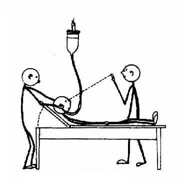 (2)交替冷热试验(alternate bithermal caloric test,Hallpike caloric test):此法反应小,无痛苦,较准确,并能指出眼震的优势偏向。仰卧,头抬起30°,吊桶悬挂于患者头部上60cm处,内盛30°C冷水,桶下接皮管和特制橄榄头。橄榄头内径为4mm,其外壳有回水槽,将橄榄头放入外耳道,并将冷水灌注外耳道后40秒即停止(注水量约为250~500ml),同时嘱患者注视正前上方,观察眼震方向和反应时间。反应时间计算为自灌注开始起到眼震停止为止。休息5~10分钟再检查对侧。然后用44°C热水如上法测试两耳(图2-38)。