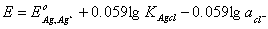 如果电极体系是由金属、该金属难溶盐和该难溶盐的阴离子组成,如Ag-Agcl-Kcl电极体系,电极反应为
