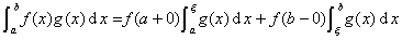 (3) 若函数f(x)g(x)在区间[a,b]上有界且可积,而f(x)[a,b]上是单调的,则在区间[a,b]内至少存在一个数ξ(a<ξ<b),使得