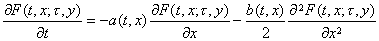 [柯尔莫哥洛夫第一方程] 如果扩散过程的条件分布函数F(t,x;τ,y)的偏导数