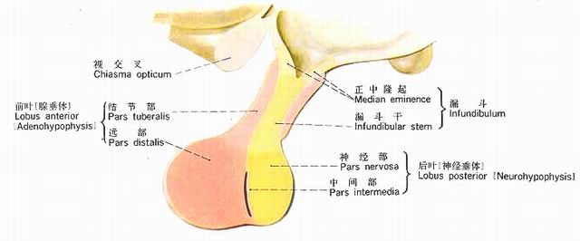 位于垂体后部,包括神经部、漏斗部部。