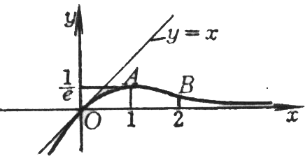 | 与y轴交点O(0,0),该点切线斜率为1  极大点 A(1,  拐 点
