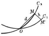 设两条曲线C1C2有一共同点O,在C2上取一点M,从MC1的距离设为h,以d表示MO的距离(图7.17),如果
