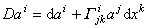 在普通导数中,对于已微分的张量的每个指标再加上一项就可以构成任意张量的协变导数,对于逆变指标,这项的形式是