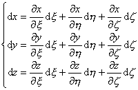 [一般公式]  假定x=f(),y=g(),z=h()()空间的一个区域    一对一地连续映射为(xyz)空间的一个区域D,并假定fgh都有连续偏导数,因为对应是一对一的,所以有