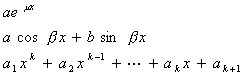 表中右栏表达式分别是(自上而下)在不是其特征根的情形下的特解的待定表达式;如果它们是特征方程的重根,那末在表中的表达式上再乘以.