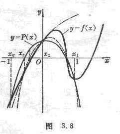 (x2,f(x2)), (x3,f(x3))作一抛物线(图3.8中的虚线),它与x轴有两个交点,取离x3较近的一点作为x4L,依此法作出点xi-2, xi-1,