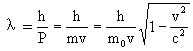 所以对具有静止质量m0的实物粒子来说,按照德布罗意假说,粒子以速度v运动时,相应于这些粒子的平面单色波的波长是
