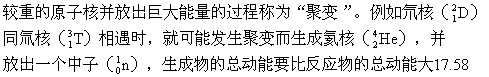 【聚变】由于轻核中的核子的平均结合能更小,当轻核相遇聚合成