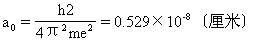 靠核最近的圆形轨道半径,约为0.529×10-8〔厘米〕。在原子物理中常用它作为一种长度单位以a0表示: