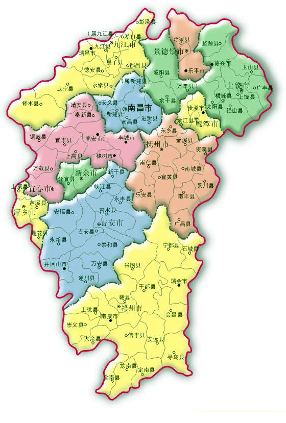 | This province area more than 160,000 square kilometers, the entire province governs 11 places levels city, 19 municipal districts, 10 county level cities, 70 counties. The altogether 789 towns, 719 townships (7 ethnic townships), 107 subdistrict offices, the provincial capital is Nanchang.