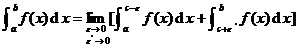 [ Generalized integral of unbounded functions ]   Let the function f ( x ) have only one flaw point x = c on the given interval [ a , b ] , that is, the function f ( x ) is unbounded in the neighborhood of the point x = c, and in [ a , b ] a , c - ε ] and [ c + ε ', b ] are integrable, ε , ε ' are any small positive numbers, when ε and ε ' tend to zero independently, the limit